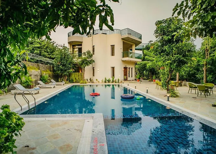 우다이푸르 Mahogany Mansion 빌라는 개인 수영장, 정원과 같은 레저 옵션을 제공합니다. 이 장소는 Monsoon Palace에서 4.2 km 내에 있습니다.